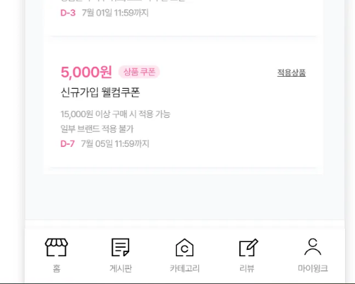 지급된 쿠폰은 윙크 앱 내에서 다양한 렌즈 구매 시 사용할 수 있습니다. 제품하나당 쿠폰을 1개 적용할 수 있으며 구매 금액 기준은 15,000원 이상입니다.