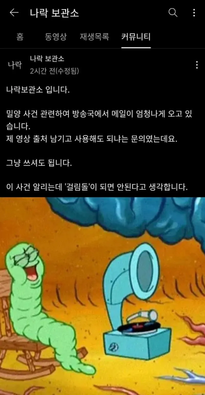 나락 보관소는 최근 밀양 사건과 관련된 게시물을 올리며 주목을 받고 있습니다. 게시물에 따르면, 방송국에서 밀양 사건 관련 영상 사용 문의가 많이 들어오고 있다고 합니다. 나락 보관소는 영상 출처를 남기고 자유롭게 사용해도 된다고 밝히며, 이 사건을 알리는 것이 중요하다고 강조했습니다.