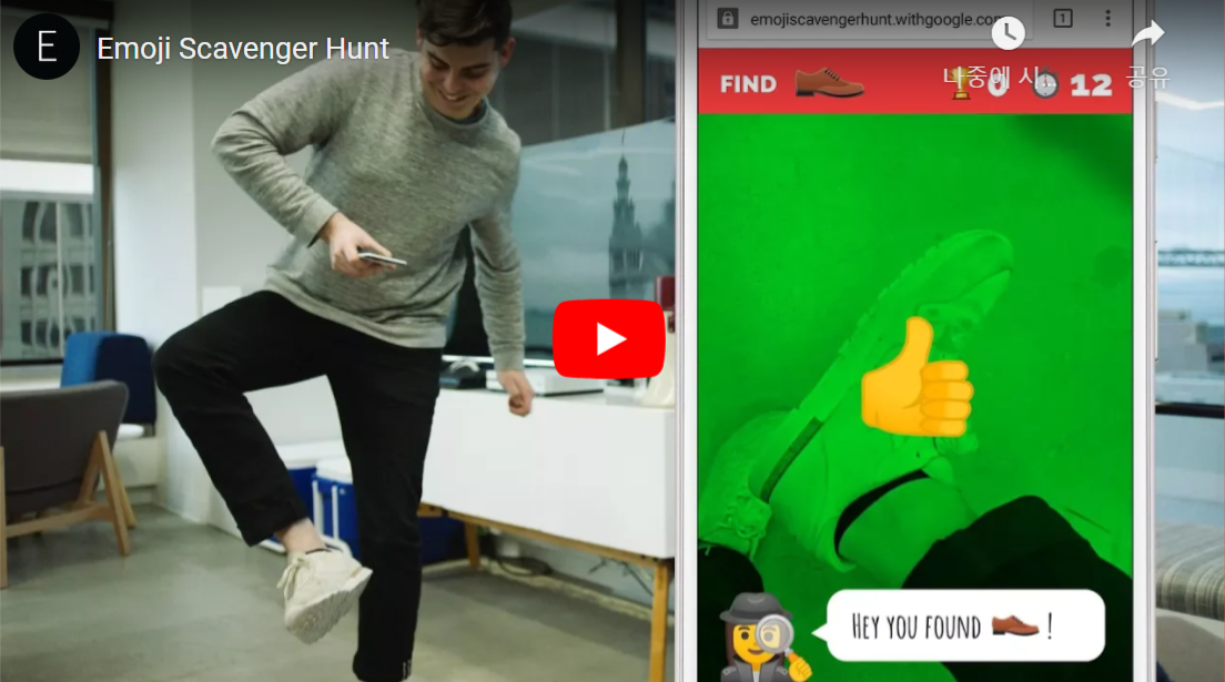 이모지 스캐빈저 헌트는 구글의 신경망이 여러분의 카메라가 포착한 이미지를 분석해 이모지를 맞추는 게임입니다. 제한된 시간 내에 주어진 이모지를 찾아 카메라로 촬영하면 됩니다.